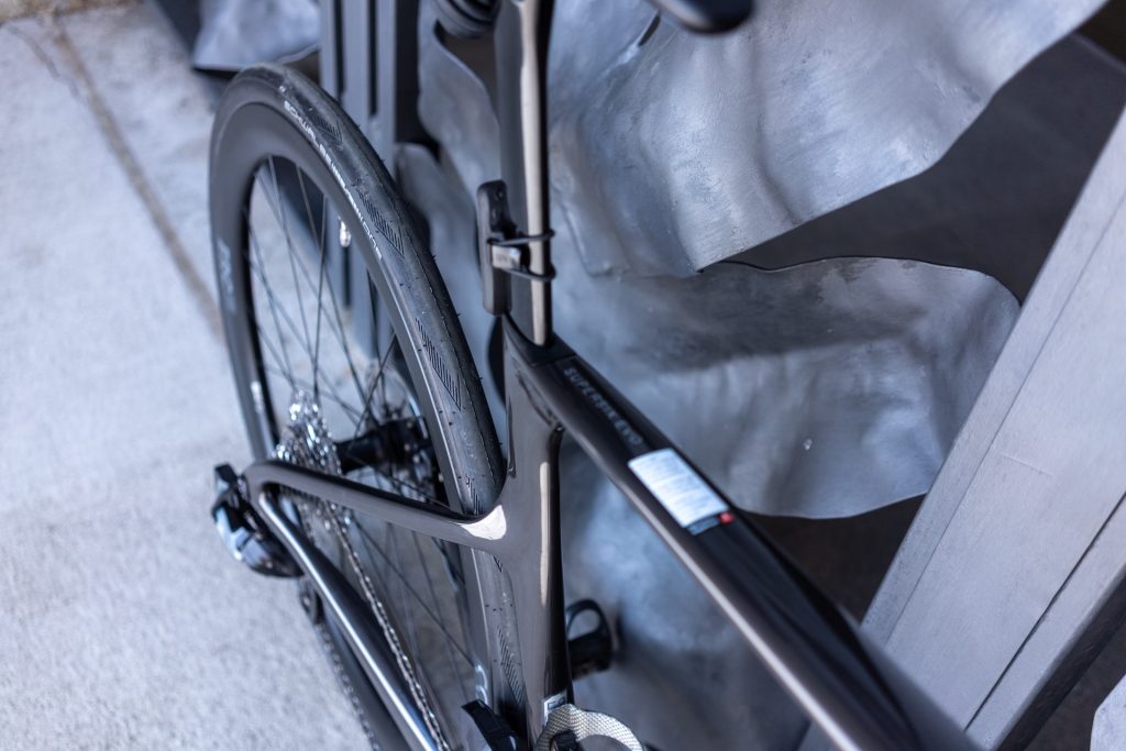 SuperSix EVO 5. generacji to zatem balans między lekkością a „śliskością” w powietrzu, okraszony komfortem (pionowe ugięcie), który nie godzi w sztywność boczną i skrętną konstrukcji (okolice suportu nie mogą zawieść na sprincie). Czy ta piękna teoria z prospektu przenosi się do realu?