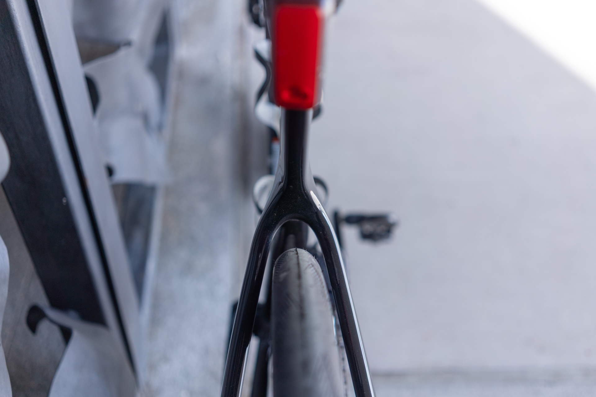 Ej, no weź! Może być piękny, może być aero, ale jeśli trudno z nim wytrzymać na co dzień, szybko się odkochasz. Comfort is everything! W sensie nie, że kanapa, ale taki, który nie zamęczy Cię, wymuszając na Tobie bezustanne napięcie w oczekiwaniu na uderzenie. Studzienka – spinasz się, spękany asfalt – spinasz się, przejazd kolejowy – o matko! Nie umiałabym pokochać szosy, która robi mi krzywdę. SuperSix Evo nie robi! Jak brzmi zaklęcie? “Obniżony seatstay”.