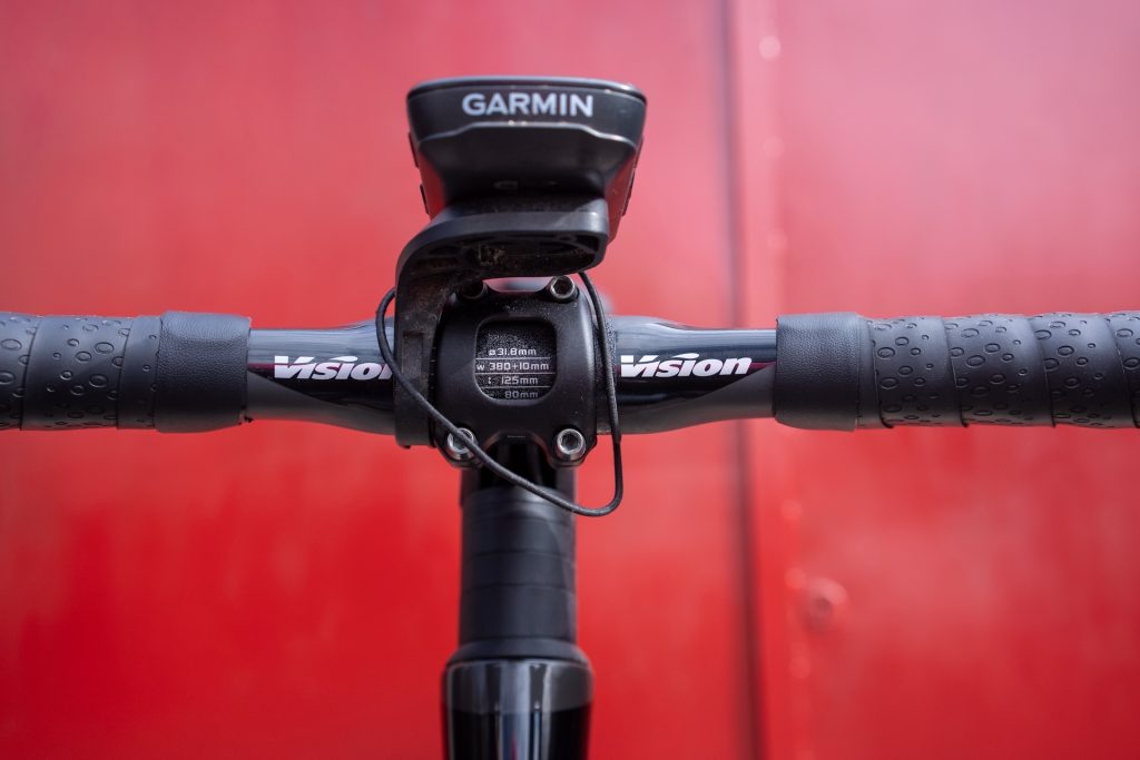 - Kokpit to w EVO 4 kierownica Vision Trimax Carbon Aero połączona z mostkiem Cannondale C1 Conceal. System ten pozwala na ukrycie przewodów pod mostkiem (ułatwia to serwis i ewentualne zmiany) i jednoczesne zachowanie czystych linii.