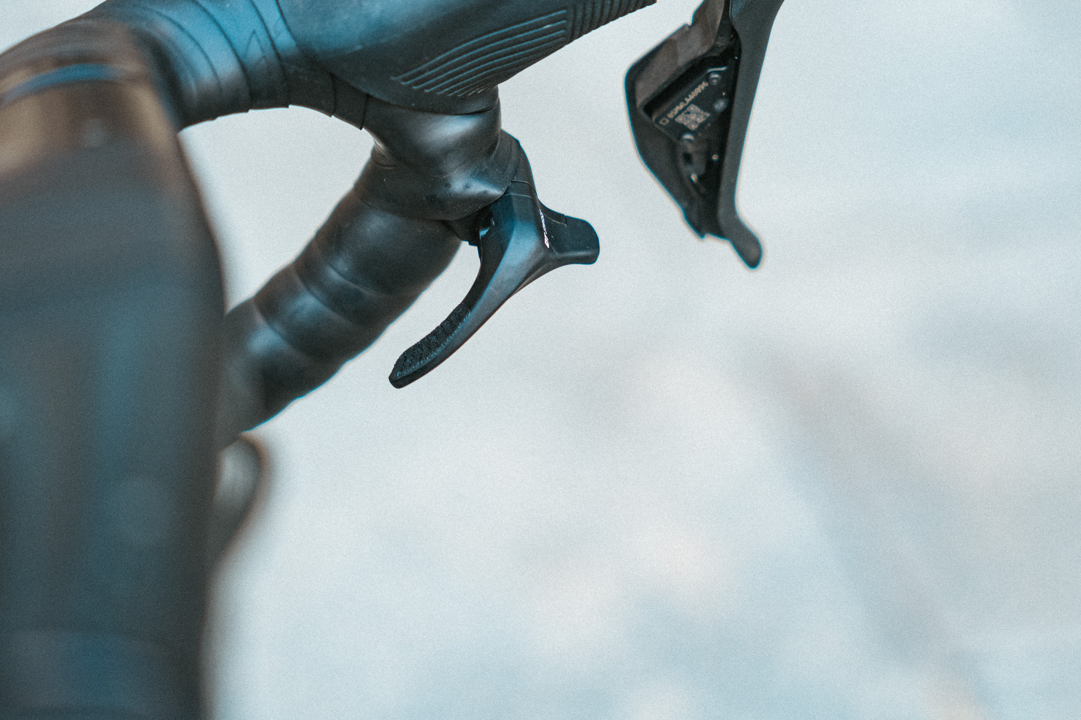 System jest pół-bezprzewodowy: klamki komunikują się przez Bluetooth, ale przerzutki są spięte kablem z centralną baterią w ramie. To rozwiązanie ma ogromny plus: jedna bateria trzyma „wieki” (zdecydowanie dłużej niż wymienne akumulatorki w systemach AXS), co w wyścigach ultra ma znaczenie.