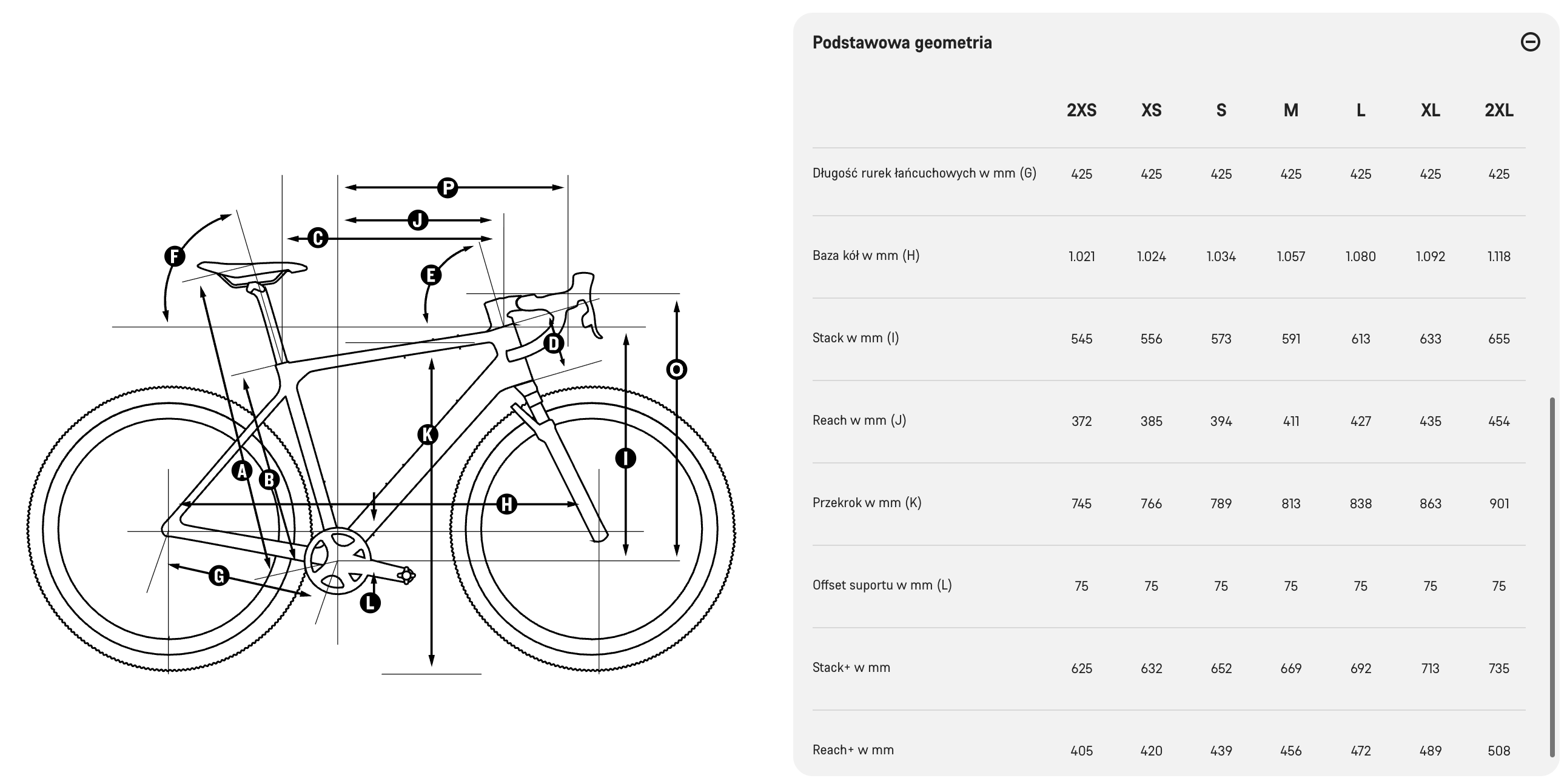 Fanatyków cyferek odsyłam do szczegółowych tabel na stronie producenta – warto jednak odnotować szeroką rozmiarówkę (od 2XS do 2XL), co pozwala na precyzyjne dopasowanie maszyny mimo zintegrowanego kokpitu.