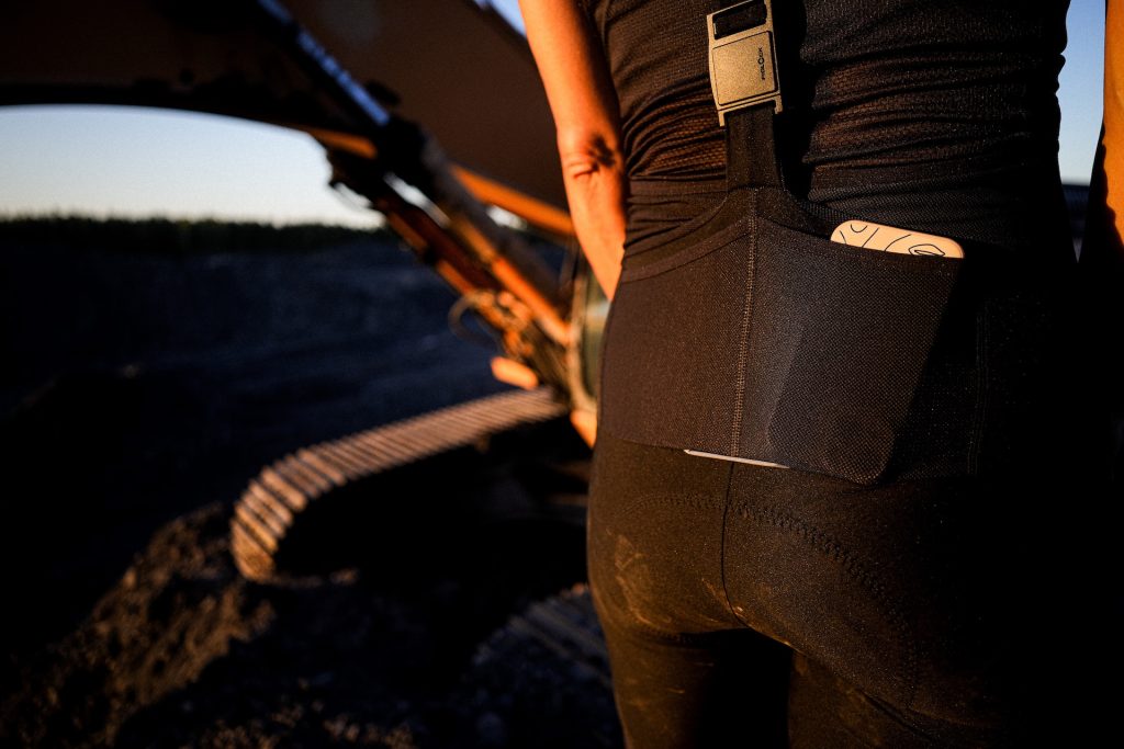 Są w sumie 4. Dwie po zewnętrznej stronie ud – na telefon, mały aparat, żele, chusteczki, dropsy, błyszczyk, whatever. Dwie na plecach – niektórzy wożą w nich nawet kamizelkę czy cienką kurtkę. Wykonane z mocnej siateczki, te na udach posiadają nawet wewnętrzną klapkę zabezpieczającą przed wysuwaniem się na przykład telefonu.