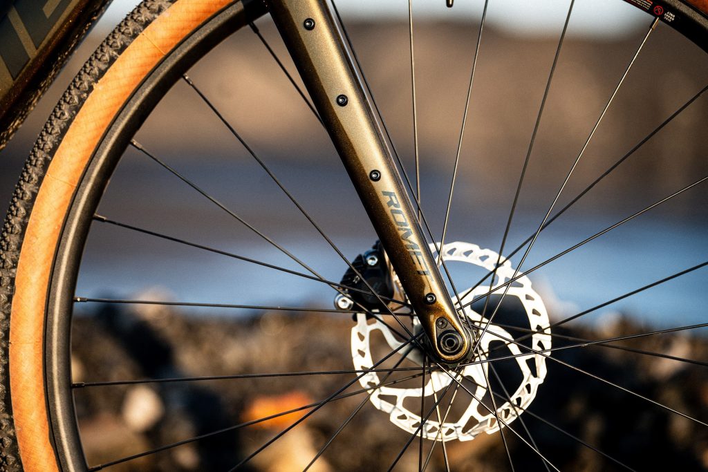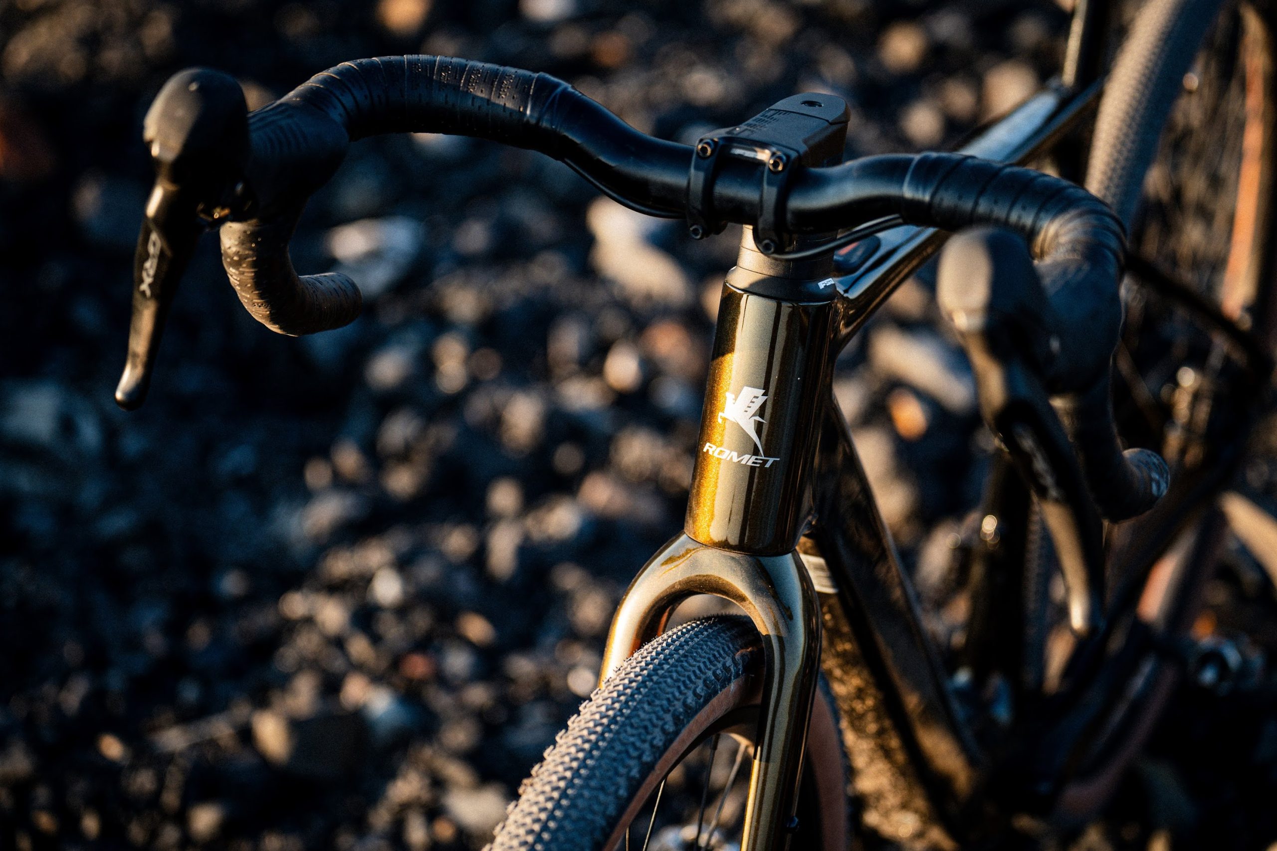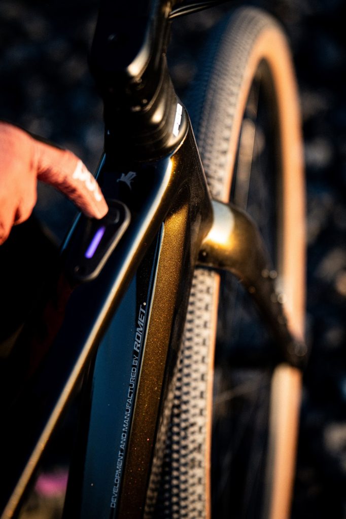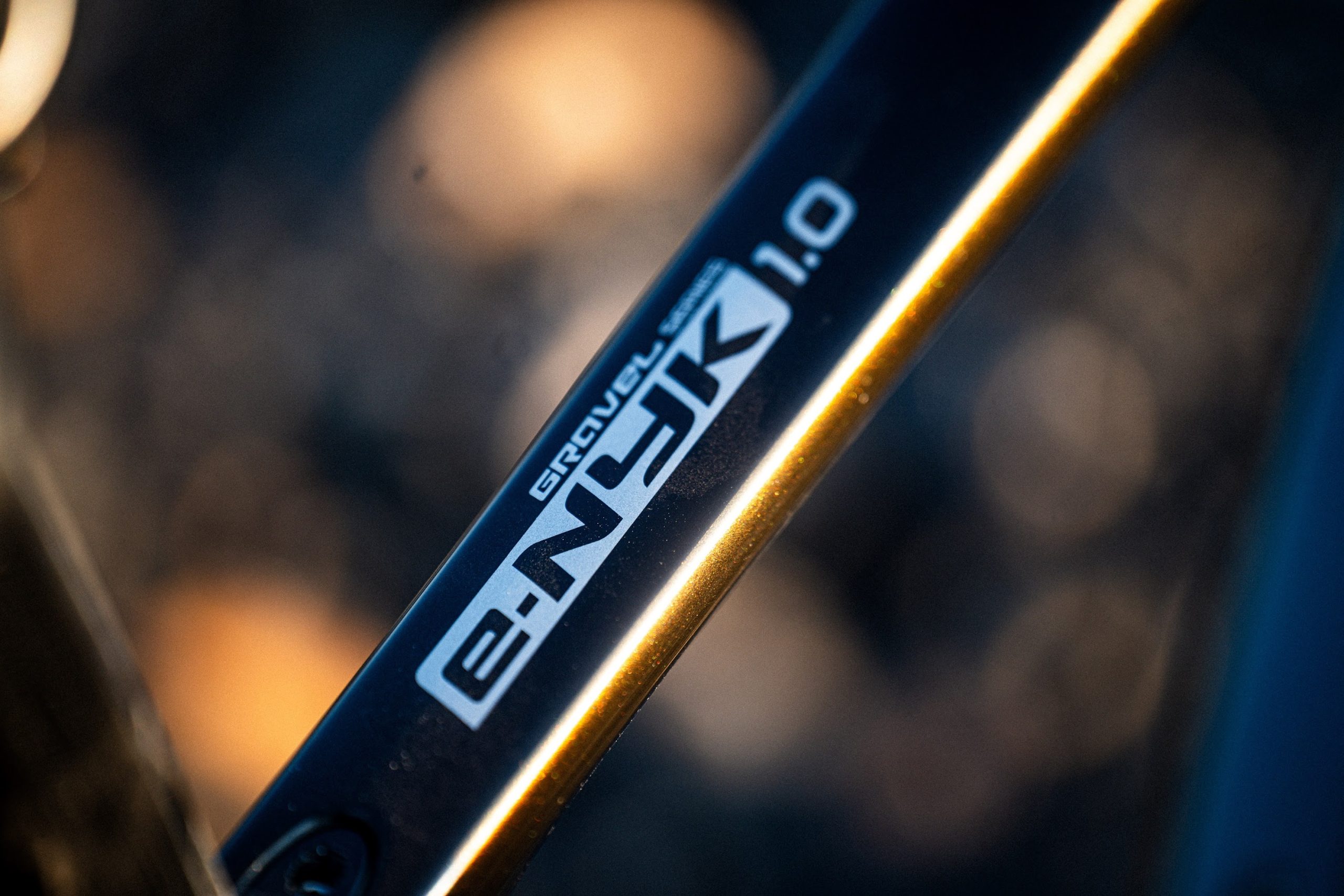 W efekcie otrzymujemy schludną, nowocześnie wyglądającą ramę, a rower na pierwszy rzut oka trudno odróżnić od analogowego gravela. Kolor, który po wyciągnięciu z kartonu jest stonowany, mocno zyskuje w słońcu (szczególnie tym zbliżającym się ku zachodowi). E-NYK nie epatuje ani krzykliwym logotypem, nie epatuje też swoją elektryfikacją.