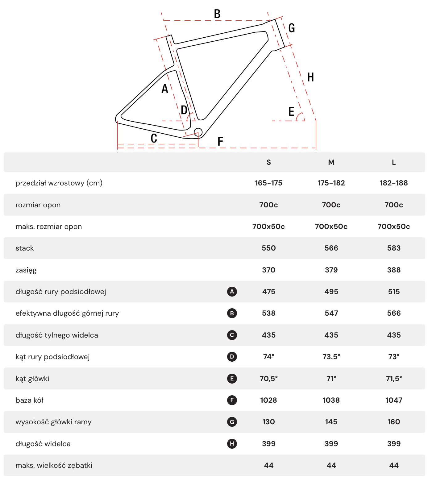 Geometria ramy to wyraźna ewolucja rozwiązań, które znamy już w linii NYK. Romet postawił na „nowoczesny gravelowy środek” – proporcja Stack do Reach wymusza relatywnie wyprostowaną, komfortową pozycję, idealną dla osób o mniej sportowym zacięciu (w końcu tu elektryk). Konstrukcja ma cechy progresywne: nieco dłuższa baza kół w połączeniu z nisko osadzonym środkiem ciężkości sprawia, że rower prowadzi się statecznie, zachowując wzorową stabilność na luźnych nawierzchniach.