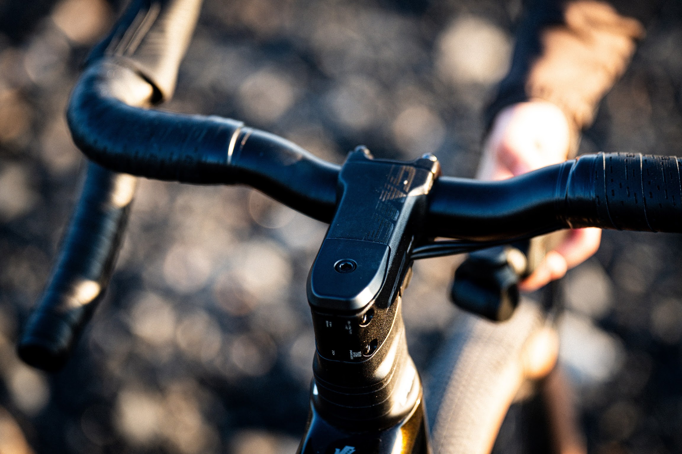 Pół-zintegrowany kokpit opiera się na aluminiowej kierownicy RTM oraz mostku FSA. Całość uzupełnia owijka o wysokiej gęstości Fizik, przyjemnie wygodne siodło Selle Royal SRX Athletic oraz karbonowa sztyca o aero przekroju.