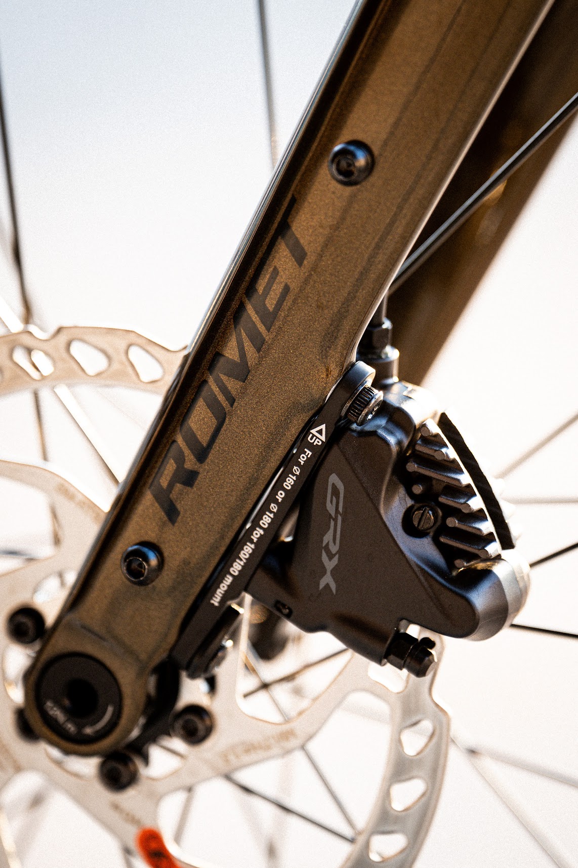 Na zjazdach wjeżdżamy też w wiraż, za którym księgowi Rometa wygrali z inżynierami. Seryjne zaciski Shimano BR-RX400 połączone z tarczami 160 mm to w tym zestawieniu po prostu „słabe ogniwo”. Na długich zjazdach hamulcom brakuje „jadu” i zapasu siły; klamka twardnieje, a tarcze łapią zadyszkę szybciej, niż byśmy chcieli. W rowerze elektrycznym, przy większej masie, układ hamulcowy powinien być „o rozmiar za duży” – tutaj jest wyliczony „na styk”.